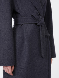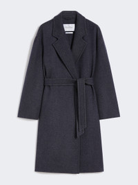 DETAILS Robe coat with a slightly egg-shaped silhouette. Hand-stitched, denim-effect pure wool double fabric coat Lapel collar Long sleeves with dropped shoulders Matching belt fastening Side inset pockets Unlined COMPOSITION AND CARE Fabric 100% virgin wool; - except joining thread. Do not wash; do not bleach; do not tumble dry; cool iron; professionally dry clean perchloroethylene - mild process; do not wet clean. Distributed by Max Mara S.r.l., registered office in Reggio Emilia (Italy), Via Giulia Maramotti 4, 42124 (IT)