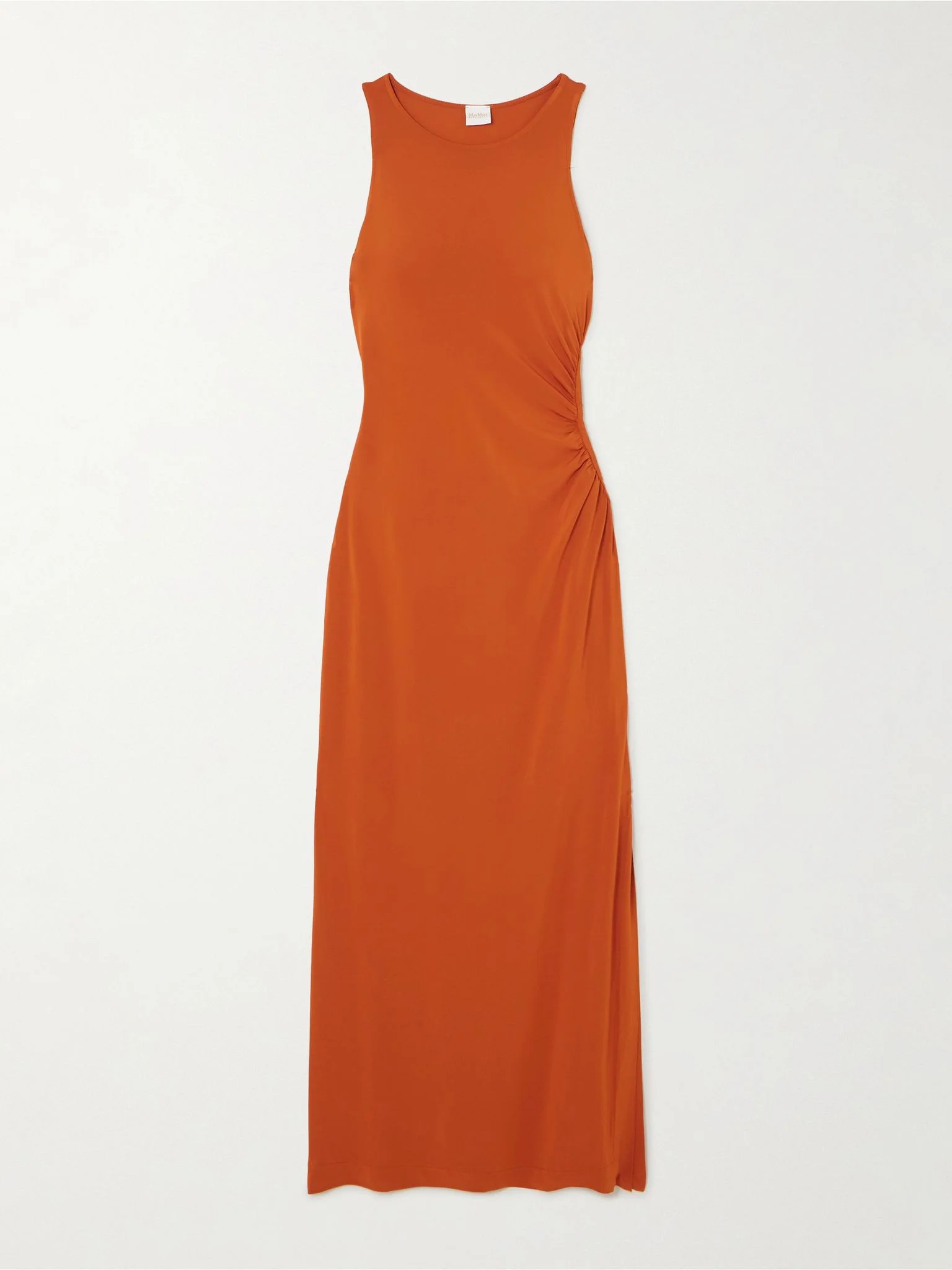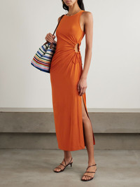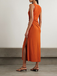 Max Mara's 'Caro' dress has a side cutout that's threaded with drawstrings - adjust the ties to define the waist and show your preferred amount of skin. It's been made in Italy from fluid stretch-jersey and gently skims the figure before falling to a midi hem. Size & Fit - Fits true to size, take your normal size - Designed for a close fit - Mid-weight, stretchy fabric - Model is 175cm/ 5'9" and is wearing a size Small Model measurements: - Bust: 81cm/ 32" - Waist: 62cm/ 24.5" - Hip: 89cm/ 35" Details & Care - Tomato-red stretch-jersey - Slips on - 95% viscose, 5% elastane - Hand wash or dry clean