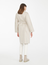 DETAILS Iconic Max Mara coat featuring a cardigan-inspired straight silhouette. Made of exquisite pure double cashmere with hand-sewn sable trim, it boasts a standing collar, kimono sleeves and patch pockets. The matching belt allows you to accentuate the waist. Length: 105 cm. COMPOSITION AND CARE Fabric 100% cashmere; - except joining thread. Do not wash; do not bleach; do not tumble dry; cool iron; professionally dry clean perchloroethylene - mild process; do not wet clean. Distributed by Max Mara S.r.l., registered office in Reggio Emilia (Italy), Via Giulia Maramotti 4, 42124 (IT)