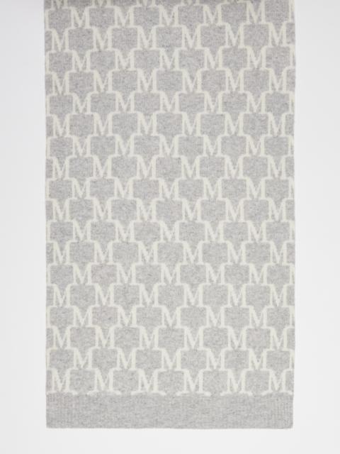 DETAILS Scarf in luxurious pure cashmere yarn, customised with an all-over M Monogram motif printed in a light contrasting shade. Finished with a ribbed motif on the short sides. Measurements: 38 x 190 cm. COMPOSITION AND CARE 100% cashmere. Do not wash; do not bleach; do not tumble dry; cool iron; professionally dry clean perchloroethylene - mild process; do not wet clean. Distributed by Max Mara S.r.l., registered office in Reggio Emilia (Italy), Via Giulia Maramotti 4, 42124 (IT)