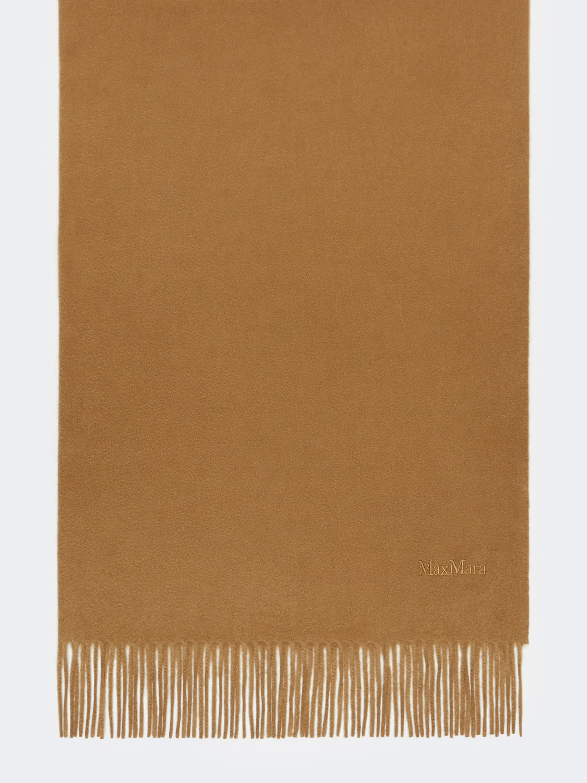 DETAILS Stole with characteristic monochrome design, embellished with delicate, tonal embroidered Max Mara lettering at the bottom. - Stole in fine sable-look pure cashmere yarn - Fringed shorter sides - Size: 70 x 196 cm COMPOSITION AND CARE 100% cashmere. Do not wash; do not bleach; do not tumble dry; warm iron max 120° c. no steam; professionally dry clean perchloroethylene - mild process; do not wet clean.; to be ironed on reverse.; iron with a cloth between. Distributed by Max Mara S.r.l., registered office in Reggio Emilia (Italy), Via Giulia Maramotti 4, 42124 (IT) Collection: MaxMara Accessori Product code: 4546336106088 - BACI
