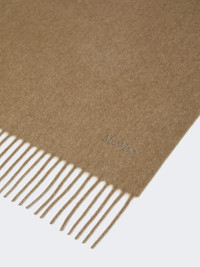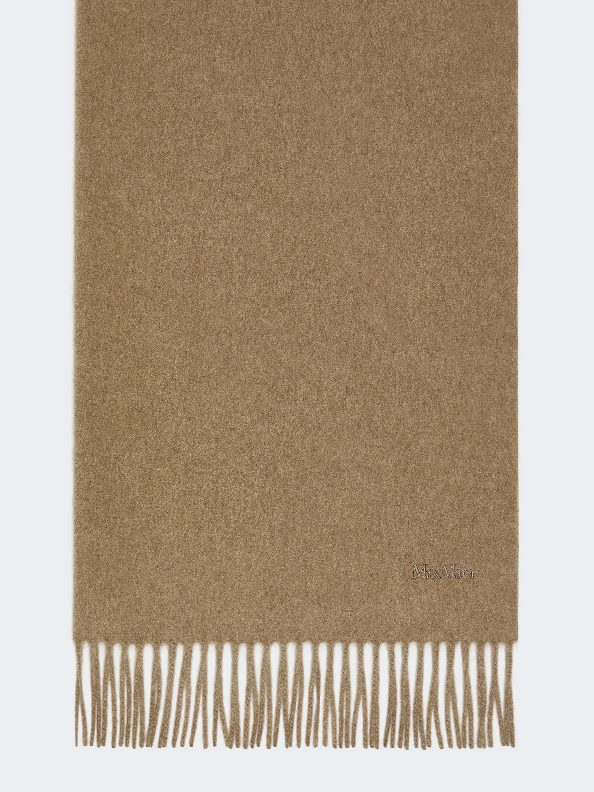 DETAILS Stole with characteristic monochrome design, embellished with delicate, tonal embroidered Max Mara lettering at the bottom. Stole in fine sable-look pure cashmere yarn Fringed shorter sides Size: 70 x 196 cm COMPOSITION AND CARE 100% cashmere. Do not wash; do not bleach; do not tumble dry; cool iron; professionally dry clean perchloroethylene - mild process; do not wet clean.; to be ironed on reverse.; to be ironed with no steam.; iron with a cloth between. Distributed by Max Mara S.r.l., registered office in Reggio Emilia (Italy), Via Giulia Maramotti 4, 42124 (IT)