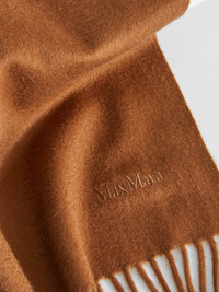 DETAILS Stole made of exquisite pure sable cashmere yarn. The monochromatic design is embellished with delicate embroidery at the hem that reproduces the Max Mara lettering in the same shades. Finished with small fringes on the short sides. Measurements: 196 x 70 cm COMPOSITION AND CARE 100% cashmere. Do not wash; do not bleach; do not tumble dry; cool iron; professionally dry clean perchloroethylene - mild process; do not wet clean.; to be ironed on reverse.; to be ironed with no steam.; iron with a cloth between. Distributed by Max Mara S.r.l., registered office in Reggio Emilia (Italy), Via Giulia Maramotti 4, 42124 (IT)