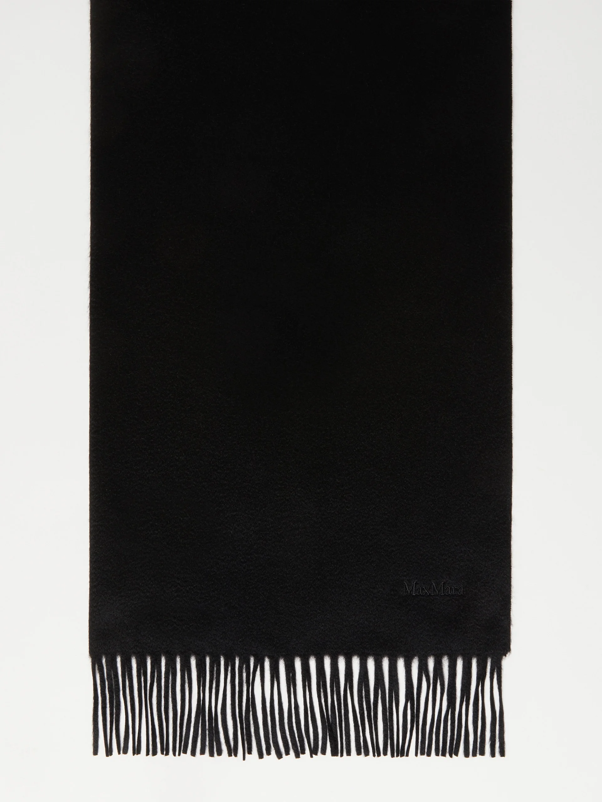 DETAILS Stole with characteristic monochrome design, embellished with delicate, tonal embroidered Max Mara lettering at the bottom. Stole in fine sable-look pure cashmere yarn Fringed shorter sides Size: 70 x 196 cm COMPOSITION AND CARE 100% cashmere. Do not wash; do not bleach; do not tumble dry; cool iron; professionally dry clean perchloroethylene - mild process; do not wet clean.; to be ironed on reverse.; to be ironed with no steam.; iron with a cloth between. Distributed by Max Mara S.r.l., registered office in Reggio Emilia (Italy), Via Giulia Maramotti 4, 42124 (IT)