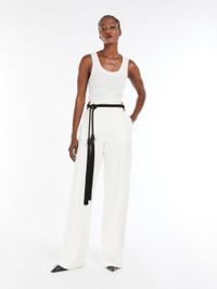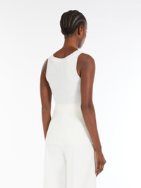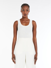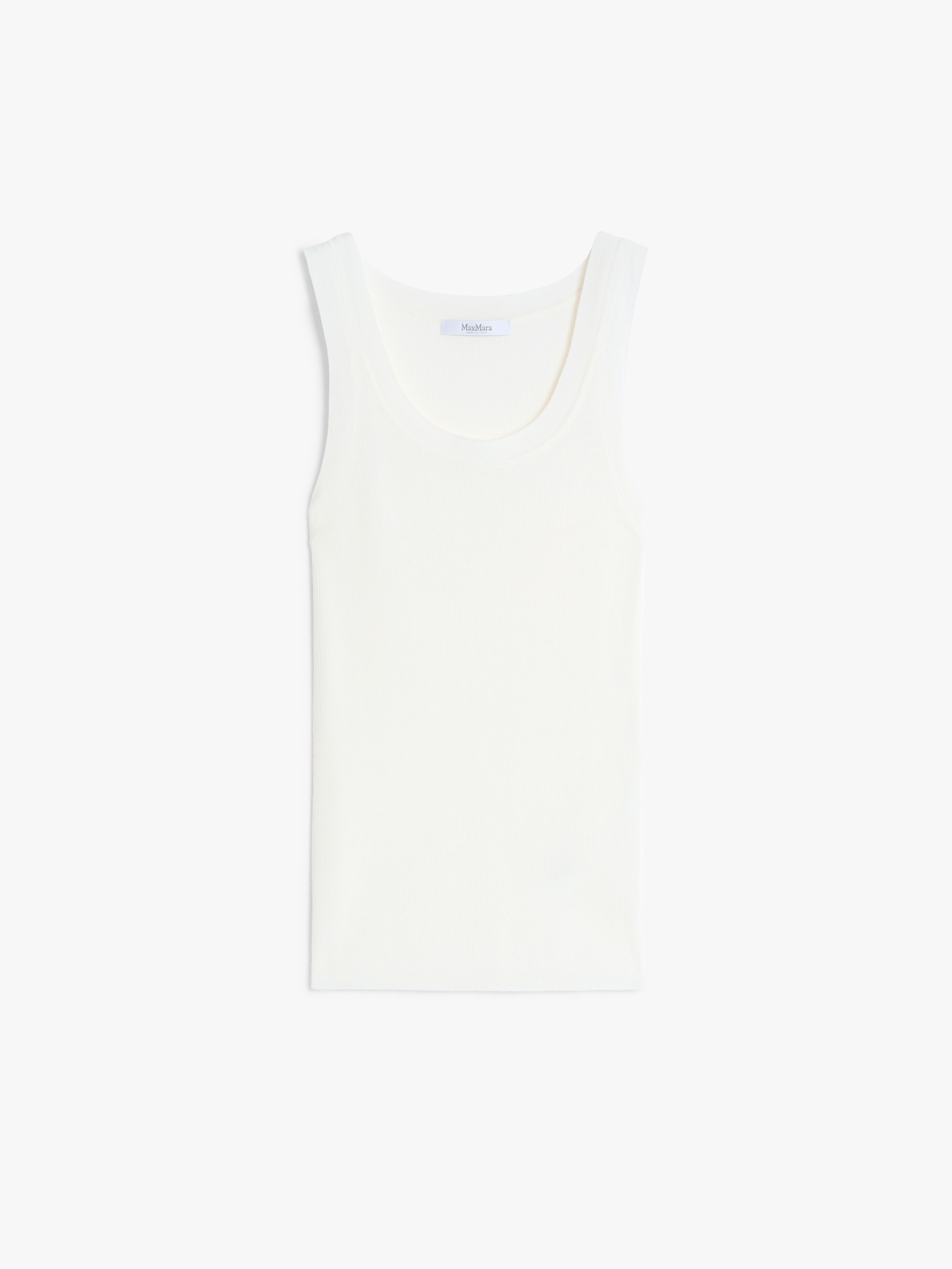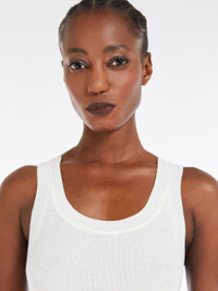 DETAILS Sleeveless streamlined top in luxurious cashmere and wool yarn, featuring a ribbed knit that highlights the silhouette. Round neckline and ribbed edges. COMPOSITION AND CARE 100% virgin wool. Hand wash cold; do not bleach; do not tumble dry; flat drying in the shade; cool iron; professionally dry clean perchloroethylene - mild process; do not wet clean.; iron with a cloth between.; using neutral detergent. Distributed by Max Mara S.r.l., registered office in Reggio Emilia (Italy), Via Giulia Maramotti 4, 42124 (IT)