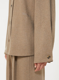DETAILS Slightly oversized overshirt blouse finished with a matching Max Mara logo embroidered on the left side as worn. Stretch cashmere flannel blouse Comfort fit Shirt collar Wide raglan sleeves, adjustable with button and reverse pleat at the hem Front fastening with horn buttons Rounded hem Dedicated packaging with storage case and a branded mothproof cedar stick COMPOSITION AND CARE Jersey fabric 95% cashmere, 3% elastane, 2% wool; - exclusive of embroideries. Do not wash; do not bleach; do not tumble dry; cool iron; professionally dry clean perchloroethylene - mild process; do not wet clean.; iron with a cloth between. Distributed by Max Mara S.r.l., registered office in Reggio Emilia (Italy), Via Giulia Maramotti 4, 42124 (IT)