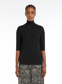 DETAILS Turtleneck jumper in luxurious, smooth pure wool yarn. The style features a high neck and elbow-length set-in sleeves. COMPOSITION AND CARE 100% virgin wool. Hand wash cold; do not bleach; do not tumble dry; flat drying in the shade; cool iron; professionally dry clean perchloroethylene - mild process; do not wet clean.; iron with a cloth between.; using neutral detergent. Distributed by Max Mara S.r.l., registered office in Reggio Emilia (Italy), Via Giulia Maramotti 4, 42124 (IT)