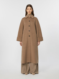 DETAILS Oversized, long coat with matching belt to tie at the waist. Soft, hand-stitched pure cashmere double-face drap coat Shirt collar with button and eyelet Long and voluminous raglan sleeves Single-breasted closure with visible buttons Vertical welt pockets on the sides Unlined COMPOSITION AND CARE Fabric 100% cashmere; - except joining thread. Do not wash; do not bleach; do not tumble dry; cool iron; professionally dry clean perchloroethylene - mild process; do not wet clean.; wash the garment while it is fastened.; do not iron the buttons.; protect buttons before washing.; contains non-textile parts of animal origin. Distributed by Max Mara S.r.l., registered office in Reggio Emilia (Italy), Via Giulia Maramotti 4, 42124 (IT)