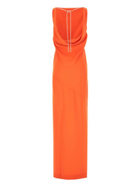open-back dress Highlights - Orange - Lobster claw fastening - Crew neck - Sleeveless - Side slit Imported Composition Lining: Triacetate 64%, Polyester 36% Outer: Triacetate 64%, Polyester 36% Washing instructions Machine Wash