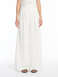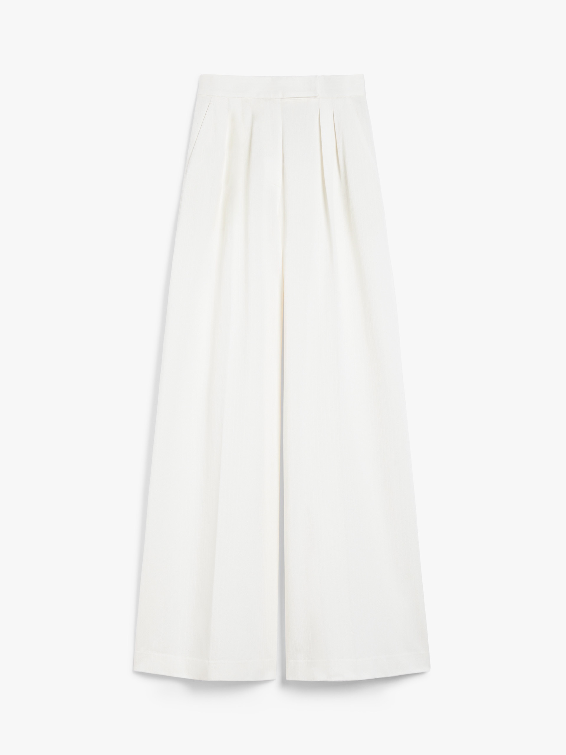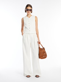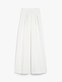 DETAILS Long trousers in soft cotton jersey with a pinstriped jacquard design. This design features a wide-leg silhouette, double darts at the front of the waist, side slant pockets and back welt pockets. Fastening with a wide waistband tab, zip fly and small hook. COMPOSITION AND CARE 100% cotton. Do not wash; do not bleach; do not tumble dry; cool iron; professionally dry clean perchloroethylene - mild process; do not wet clean.; iron with a cloth between. Distributed by Max Mara S.r.l., registered office in Reggio Emilia (Italy), Via Giulia Maramotti 4, 42124 (IT)
