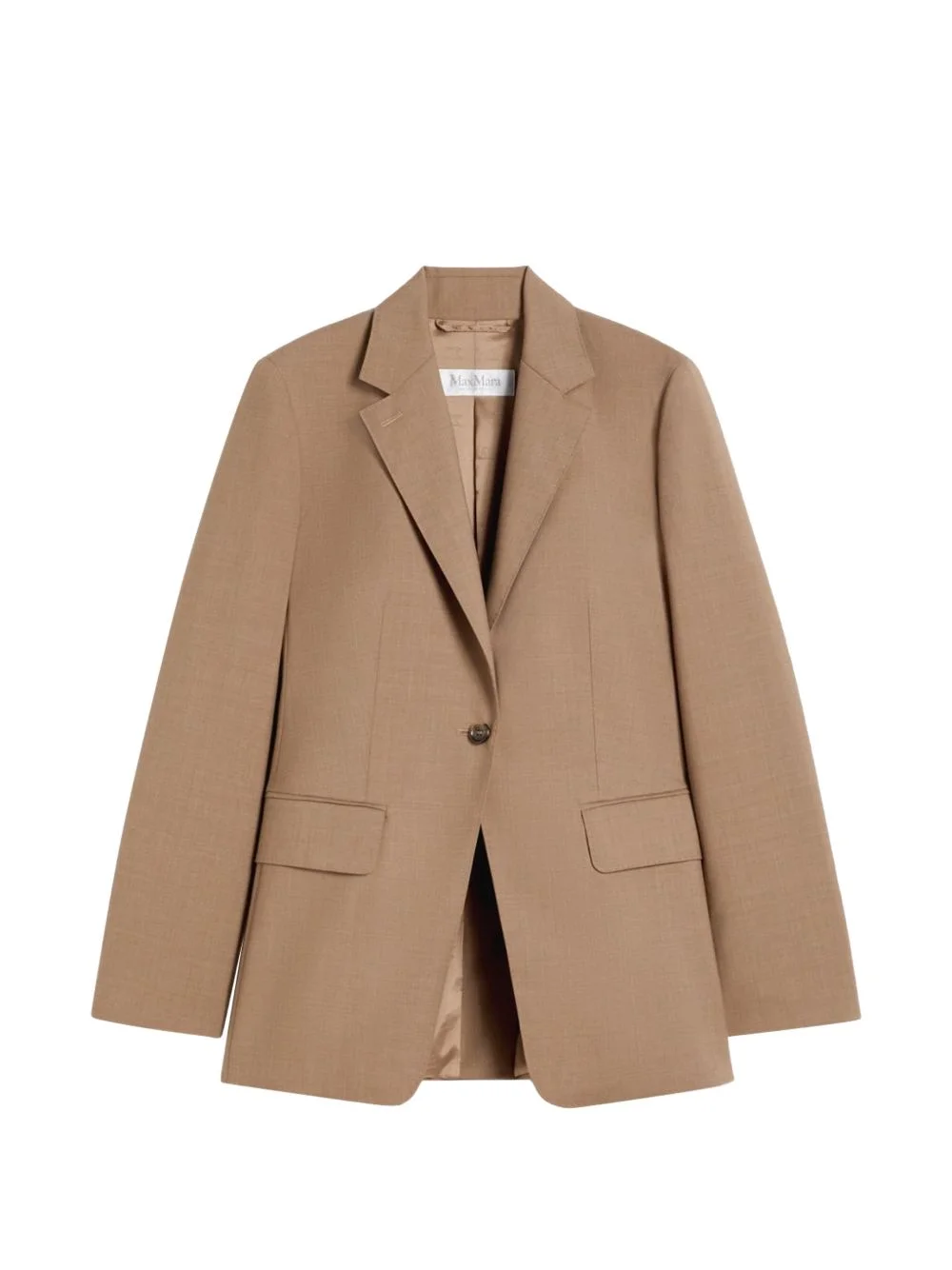 notch-lapel single-breasted blazer Highlights - Brown - Front button fastening - Notched lapels - Long sleeves - Two front flap pockets - Single-breasted Imported Composition Virgin Wool 100% Lining: Acetate 65%, Polyester 35% Washing instructions Dry Clean Only