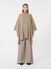 DETAILS Long cape with an enveloping, comfort fit. Rib-knit pure cashmere yarn cape High neck Loose-fitting long kimono sleeves Rib-knit trims M Monogram logo detail on the back of the neck COMPOSITION AND CARE 100% cashmere. Do not wash; do not bleach; do not tumble dry; cool iron; professionally dry clean perchloroethylene - mild process; do not wet clean. Distributed by Max Mara S.r.l., registered office in Reggio Emilia (Italy), Via Giulia Maramotti 4, 42124 (IT)