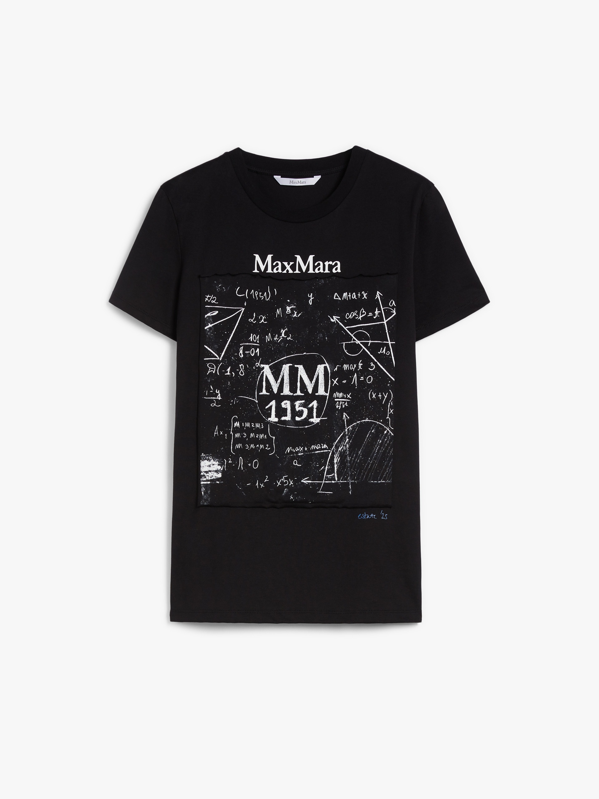 DETAILS Pure cotton T-shirt with a round neck and short sleeves. Regular-fit style with a contrasting collection motif printed on the front. Delivered with matching packaging box. COMPOSITION AND CARE 100% cotton. Hand wash cold; do not bleach; do not tumble dry; flat drying in the shade; cool iron; do not dry clean; do not wet clean.; iron with a cloth between.; using neutral detergent.; don’t rub.; turn the articles inside out before washing.; to be ironed on reverse. Distributed by Max Mara S.r.l., registered office in Reggio Emilia (Italy), Via Giulia Maramotti 4, 42124 (IT)