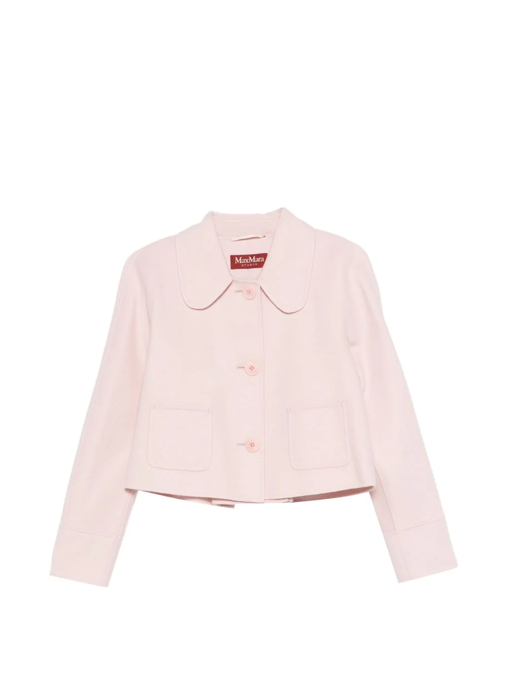 collared patch-pocket jacket Highlights - Light pink - Front patch pockets - Peter pan collar - Front button fastening - Long sleeves - Cropped Imported Composition Virgin Wool 88%, Silk 6%, Cashmere 6% Washing instructions Dry Clean Only