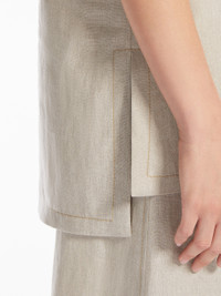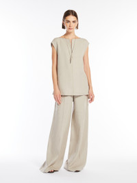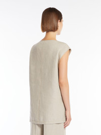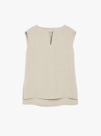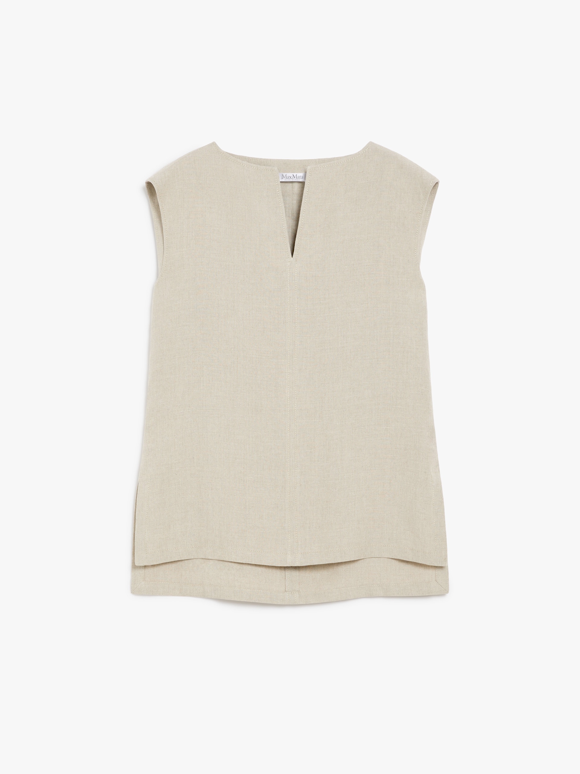 DETAILS Sleeveless blouse in light pure linen canvas. Unlined style defined by a straight silhouette with a V neckline, featuring side slits and an asymmetrical hem, slightly longer at the back. COMPOSITION AND CARE Fabric 100% flaxlinen; lining 100% flaxlinen. Machine wash cold delicate cycle; do not bleach; do not tumble dry; line drying in the shade; cool iron; professionally dry clean perchloroethylene - mild process. Distributed by Max Mara S.r.l., registered office in Reggio Emilia (Italy), Via Giulia Maramotti 4, 42124 (IT)