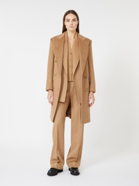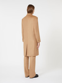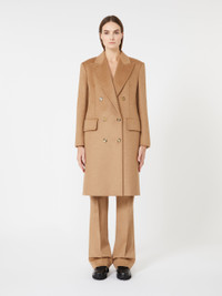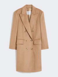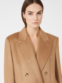 DETAILS Loose-fitting coat with central vent at the back. Heavy pure zibeline camel drap coat Straight lines with slightly structured shoulders Peak lapels and set-in sleeves with buttoned cuffs Double-breasted fastening with six buttons Pockets with flaps at the front Embellished with tailored pick stitch Lined COMPOSITION AND CARE Fabric 100% camelwool; lining 100% viscose. Do not wash; do not bleach; do not tumble dry; cool iron; professionally dry clean perchloroethylene - mild process; do not wet clean.; do not iron the buttons.; protect buttons before washing.; contains non-textile parts of animal origin. Distributed by Max Mara S.r.l., registered office in Reggio Emilia (Italy), Via Giulia Maramotti 4, 42124 (IT)