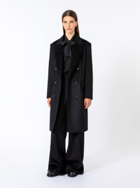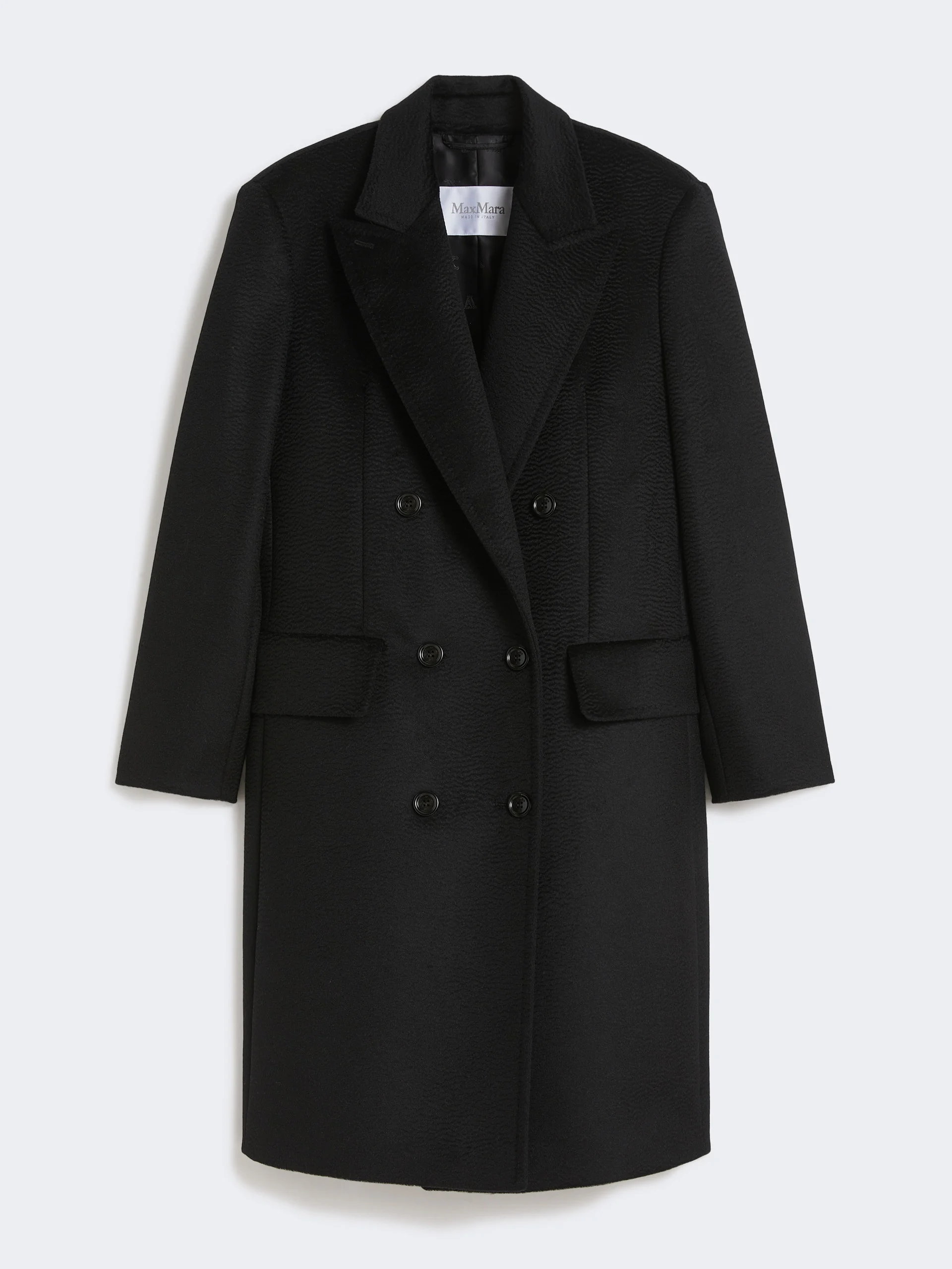 DETAILS Loose-fitting coat with central vent at the back. Heavy pure zibeline camel drap coat Straight lines with slightly structured shoulders Peak lapels and set-in sleeves with buttoned cuffs Double-breasted fastening with six buttons Pockets with flaps at the front Embellished with tailored pick stitch Lined COMPOSITION AND CARE Fabric 100% camelwool; lining 100% viscose. Do not wash; do not bleach; do not tumble dry; cool iron; professionally dry clean perchloroethylene - mild process; do not wet clean.; do not iron the buttons.; protect buttons before washing.; contains non-textile parts of animal origin. Distributed by Max Mara S.r.l., registered office in Reggio Emilia (Italy), Via Giulia Maramotti 4, 42124 (IT)