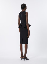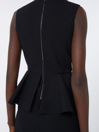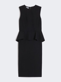 DETAILS Sleeveless midi dress, with seam and peplum at the waist that accentuate the silhouette. - Dress made of technical jersey with pique look - Fitted - Crew neckline - Back concealed zip fastening - Pencil skirt with central slit at the back - Partially lined COMPOSITION AND CARE Jersey fabric 61% polyamide, 32% cotton, 7% elastane; upper lining 59% viscose, 38% cotton, 3% elastane. Hand wash cold; do not bleach; do not tumble dry; flat drying in the shade; cool iron; professionally dry clean perchloroethylene - mild process; do not wet clean.; iron with a cloth between.; iron into original measurements.; using neutral detergent.; don’t rub.; turn the articles inside out before washing.; to be ironed on reverse. Distributed by Max Mara S.r.l., registered office in Reggio Emilia (Italy), Via Giulia Maramotti 4, 42124 (IT)