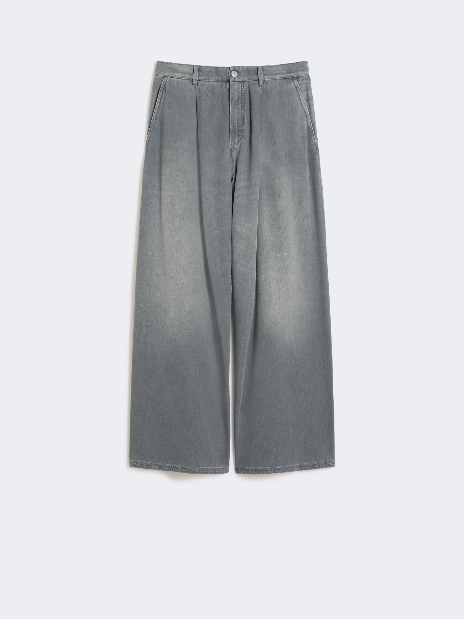 DETAILS Loose-fit trousers featuring waist darts on the front and horizontal cuts on the back of the leg. - Trousers in garment-dyed cotton and viscose denim - Wide leg - Fly-covered zip and branded tack button fastening - Slant side pockets - Patch rear pockets - Belt loops - Branded label on the back of the waist COMPOSITION AND CARE 68% cotton, 32% viscose. Machine wash cold delicate cycle; do not bleach; do not tumble dry; line drying in the shade; cool iron; do not dry clean.; wash the garment while it is fastened.; don’t iron the labels.; take care when wearing light-coloured clothes or accessories because, with the heat of the body, the denim fabric that comes into contact with them may bleed and stain. be careful while sitting on pale colored surfaces, especially if wet. wash denim items separately and always turned inside out. hang the garment turned inside out by avoiding to expose it to direct sunlight. avoid removing isolated stains. Distributed by Max Mara S.r.l., registered office in Reggio Emilia (Italy), Via Giulia Maramotti 4, 42124 (IT) Collection: 'S Max Mara Product code: 9181076106002 - SMMPEPE