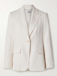 EDITORS'NOTES Freshen up your suiting collection with Max Mara's white 'Palchi' blazer. It's been tailored in Italy from wool-twill and fastens with a single horn button. Style yours with tonal pants. SIZE & FIT Model measurements: - Fits true to size, take your normal size - Designed for a slightly loose fit - Internal shoulder pads - Mid-weight, non-stretchy fabric - Model is 175cm/ 5'9" and is wearing a UK 8 - Bust: 78.1cm/ 30.75" - Waist: 64.7cm/ 25.5" - Hip: 91.4cm/ 36" DETAILS & CARE - White wool-twill - Button fastening at front - 100% virgin wool; button: 100% horn (Cow); lining: 65% acetate, 35% polyester - Dry clean