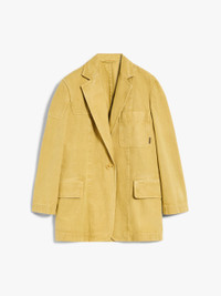 DETAILS Straight, oversized shirt-style jacket made of garment-dyed pure cotton canvas. Unlined model featuring a lapel collar, patch chest pocket and front flap pockets, dropped shoulder and side vents on the back. Finished with asymmetrical patches, accented by matching-tone double stitching. Single button fastening at the front. COMPOSITION AND CARE 100% cotton. Machine wash cold delicate cycle; do not bleach; do not tumble dry; line drying in the shade; cool iron; professionally dry clean perchloroethylene - mild process.; wash separately.; don’t iron the labels.; do not iron the buttons.; turn the articles inside out before washing.; this item may leave colour stains on brightly-coloured garments. Distributed by Max Mara S.r.l., registered office in Reggio Emilia (Italy), Via Giulia Maramotti 4, 42124 (IT)