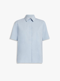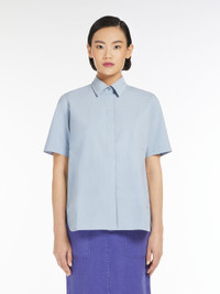 DETAILS Shirt with wide short sleeves, made of garment-dyed stretch cotton canvas. Menswear-inspired style featuring a straight silhouette with small rounded side slits, classic pointed collar and central reverse pleat on the back. Concealed front fastening with matching buttons COMPOSITION AND CARE 96% cotton, 4% elastane. Machine wash cold delicate cycle; do not bleach; do not tumble dry; line drying in the shade; cool iron; professionally dry clean perchloroethylene - mild process.; wash separately.; do not iron the buttons.; turn the articles inside out before washing.; this item may leave colour stains on brightly-coloured garments. Distributed by Max Mara S.r.l., registered office in Reggio Emilia (Italy), Via Giulia Maramotti 4, 42124 (IT)