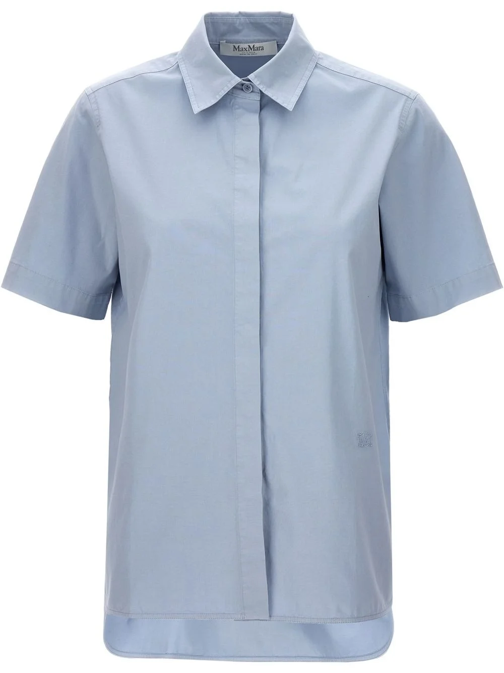 Adunco shirt Highlights - Light blue - Concealed front button fastening - Box-pleat detail - Embroidered motif - Short sleeves Made in Italy Composition Cotton 96%, Elastane 4% Washing instructions Read Manufacturer Guidelines