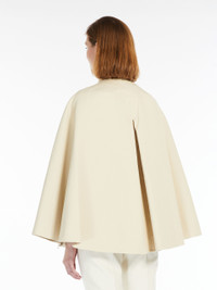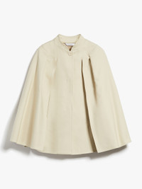DETAILS Short cape in pure cotton with mandarin collar and welt pockets. Wide and flared line. Inside finished with monogram logo in semi-lustrous thread. Single-breasted fastening with concealed buttons. Length: 77 cm. COMPOSITION AND CARE Fabric 100% cotton; - except joining thread. Do not wash; do not bleach; do not tumble dry; cool iron; professionally dry clean perchloroethylene - mild process; do not wet clean. Distributed by Max Mara S.r.l., registered office in Reggio Emilia (Italy), Via Giulia Maramotti 4, 42124 (IT)