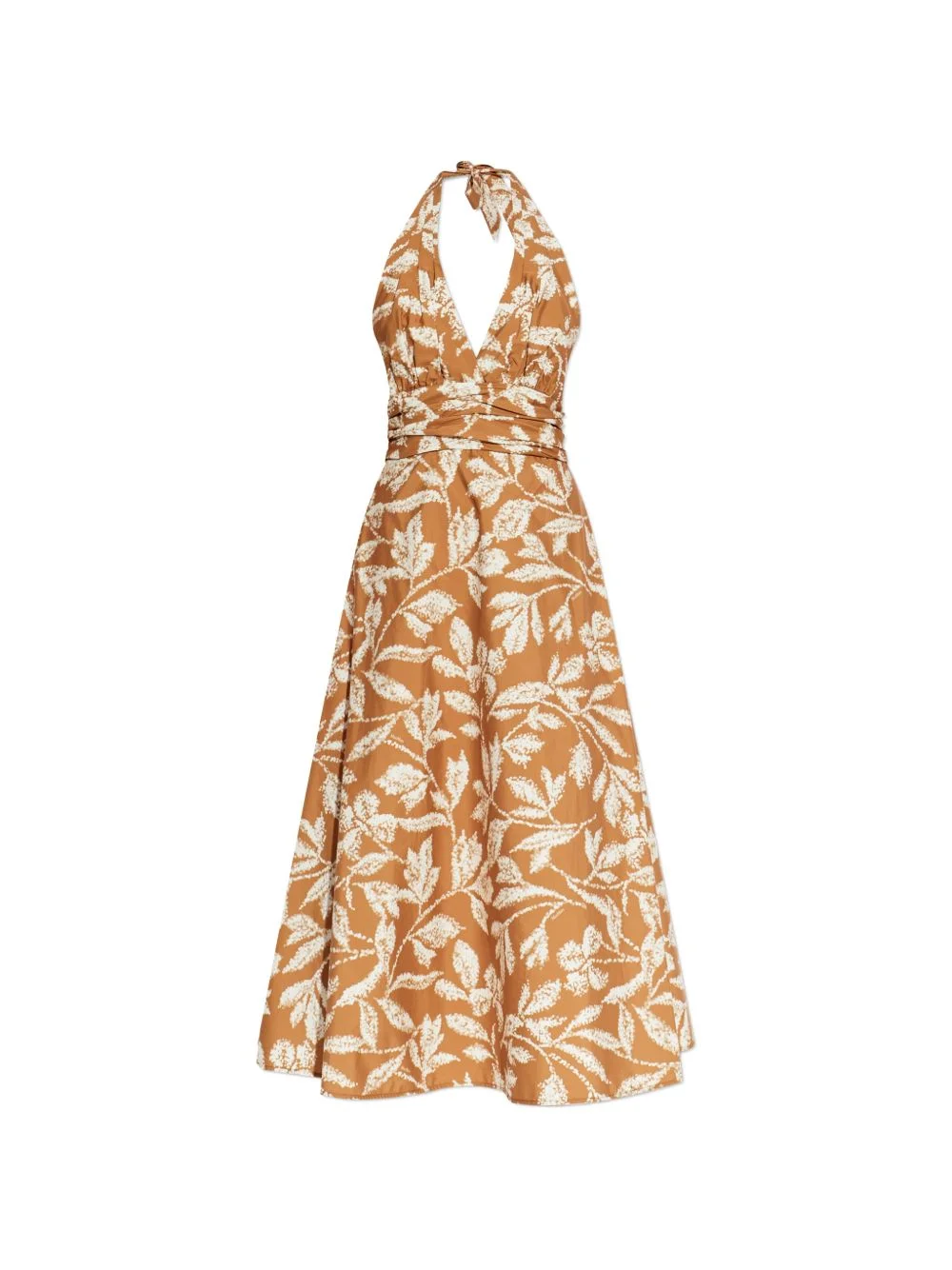 Bella floral-print midi dress Highlights - Brown - Floral print - Halterneck - V-neck - Cotton Made in Italy Composition Cotton 100% Washing instructions Read Manufacturer Guidelines