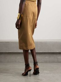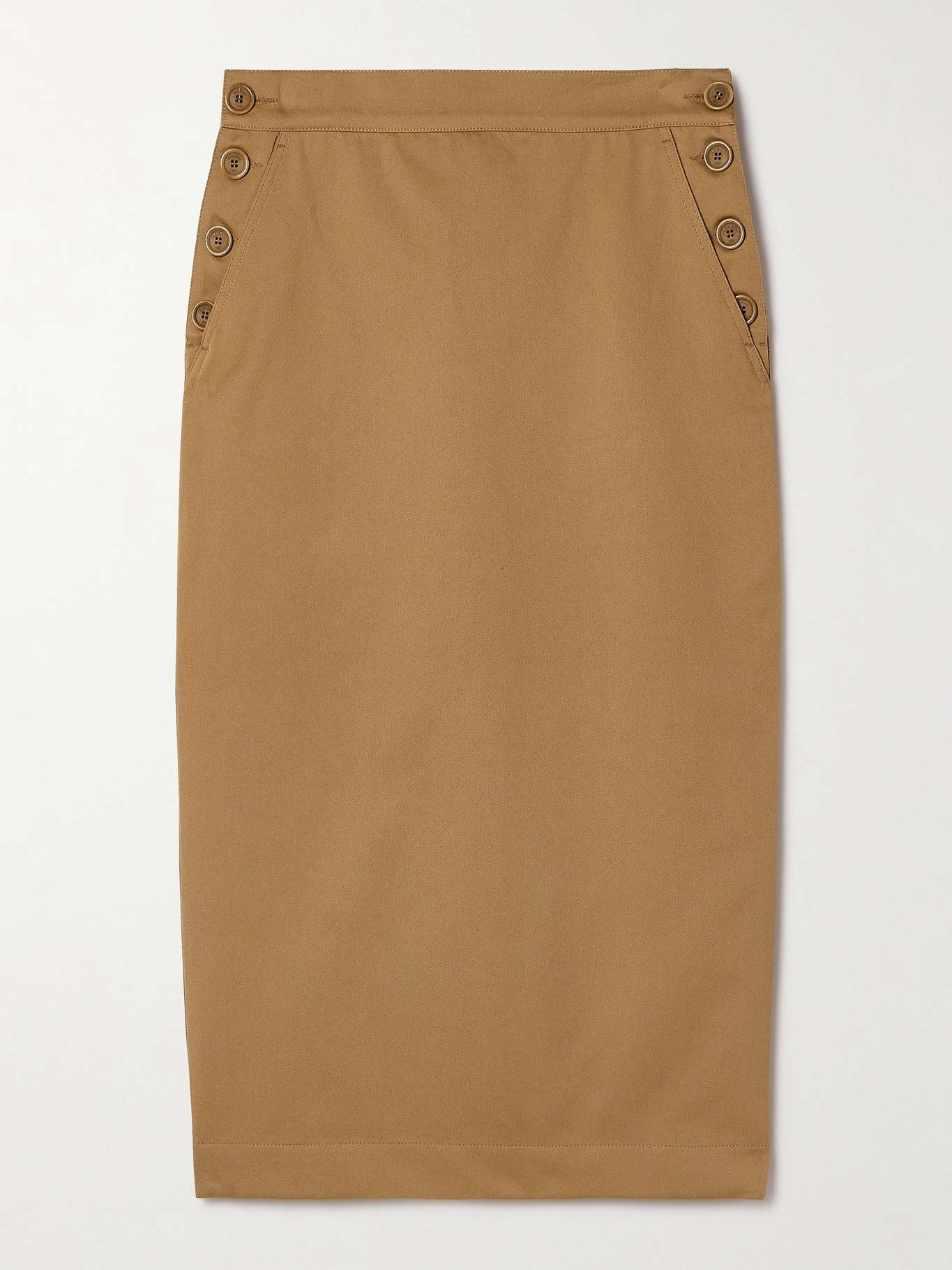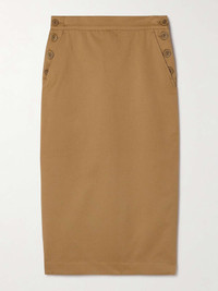 EDITORS'NOTES Max Mara's 'Cresta' skirt is modeled off workwear styles of the '30s and '40s and updated for today. Made from cotton-twill with a soft sheen, it's designed in a straight shape and has tonal horn buttons along the hips. Emulate the Spring '24 runway by styling yours as part of an all-neutral outfit. SIZE & FIT Model measurements: - Fits true to size, take your normal size - Midi-length, designed to be worn at the waist - Mid-weight, non-stretchy fabric - Model is 177cm/ 5'10" and is wearing a UK 8 - Bust: 80.1cm/ 31.5" - Waist: 64.8cm/ 25.5" - Hip: 90.5cm/ 35" DETAILS & CARE - Light-brown cotton-twill - Button fastenings along sides - 100% cotton; buttons: 100% horn (Cow) - Dry clean