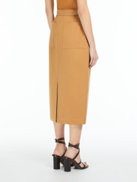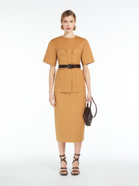 DETAILS Pencil skirt made of pure cotton fabric. Dungarees-inspired style with adjustable braces crossing at the back, inset side pockets and back patch pockets. Finished with a flat pouch flap on the front and opening with buttons on both sides. COMPOSITION AND CARE 100% cotton. Do not wash; do not bleach; do not tumble dry; cool iron; professionally dry clean perchloroethylene - mild process; do not wet clean.; do not iron the buttons.; turn the articles inside out before washing. Distributed by Max Mara S.r.l., registered office in Reggio Emilia (Italy), Via Giulia Maramotti 4, 42124 (IT)