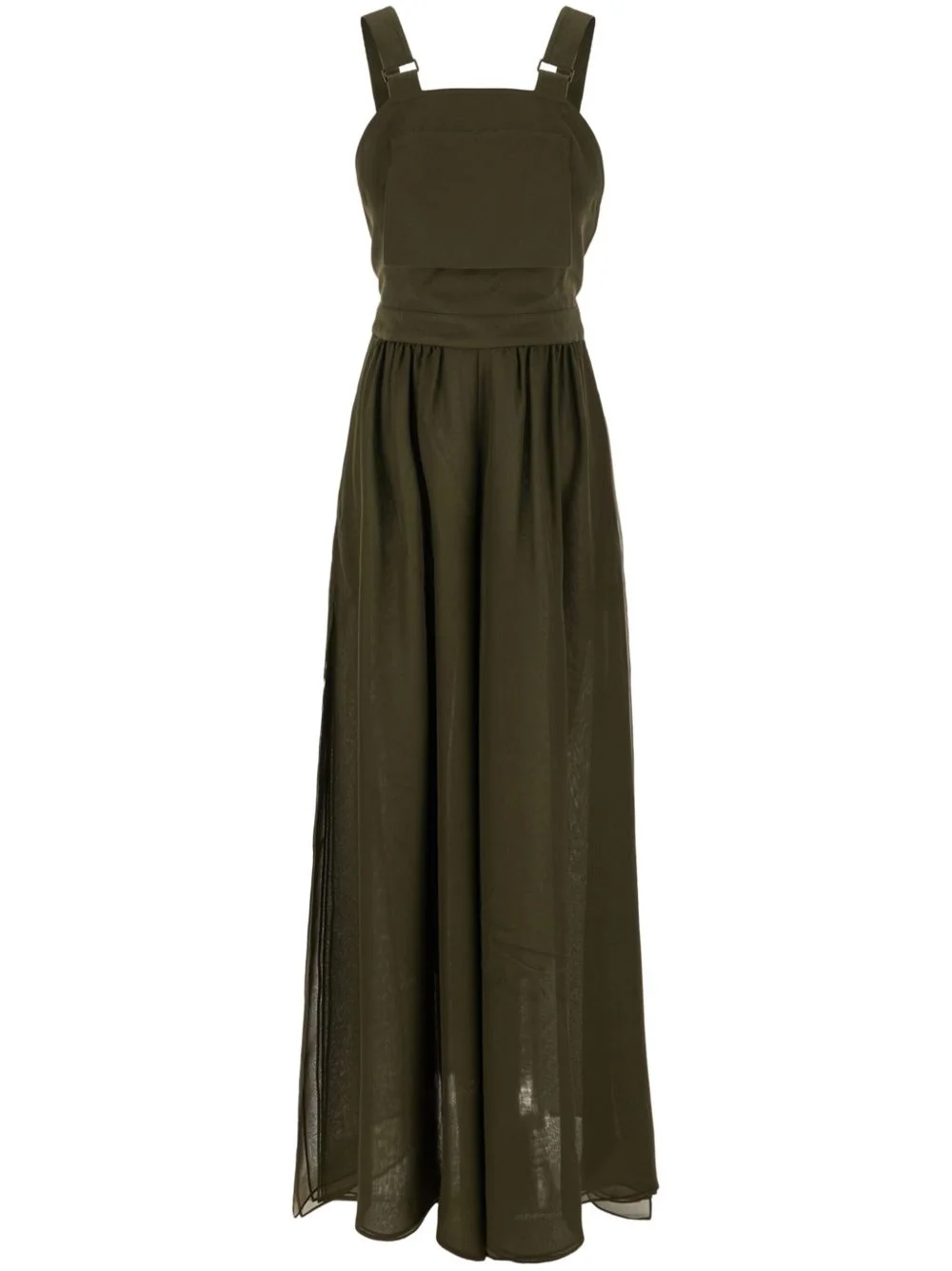 pinafore jumpsuit Highlights - Khaki - Concealed rear zip fastening - Adjustable shoulder straps - Flared Made in Italy Composition Outer: Silk 100%, Cotton 100% Lining: Silk 100% Washing instructions Read Manufacturer Guidelines