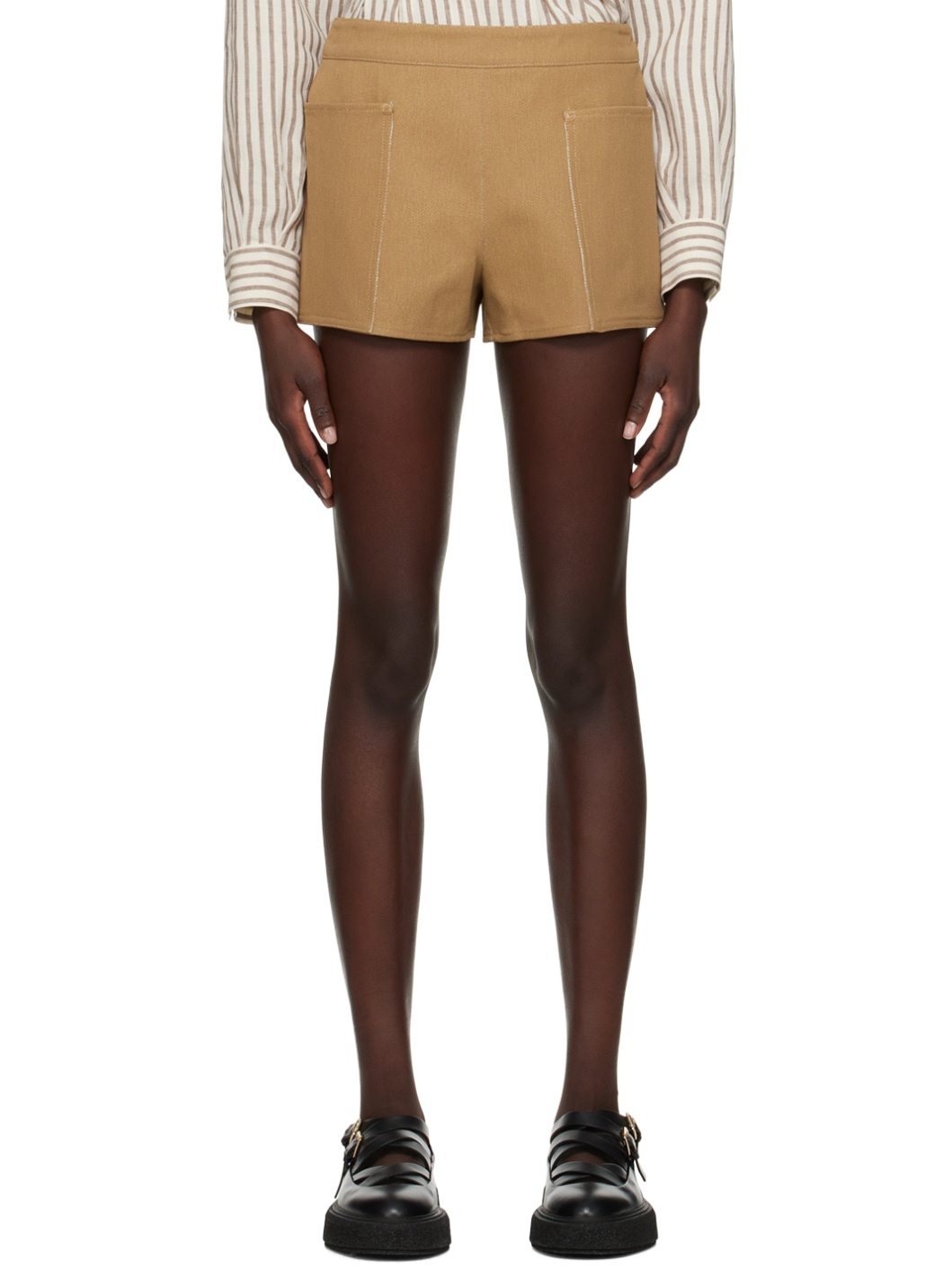 Cotton drill shorts. · Two-pocket styling · Concealed zip closure at back Supplier color: Bronze
