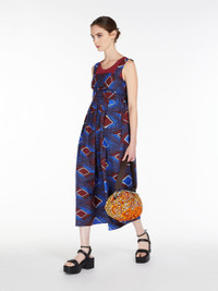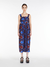DETAILS Long dress in pure cotton poplin with back zip fastening. Top with draping and bow on the back. Full, pleated skirt with side inset pockets. COMPOSITION AND CARE Fabric 100% cotton; lining 100% cotton. Machine wash cold delicate cycle; do not bleach; do not tumble dry; line drying in the shade; cool iron; professionally dry clean perchloroethylene - mild process. Distributed by Max Mara S.r.l., registered office in Reggio Emilia (Italy), Via Giulia Maramotti 4, 42124 (IT)