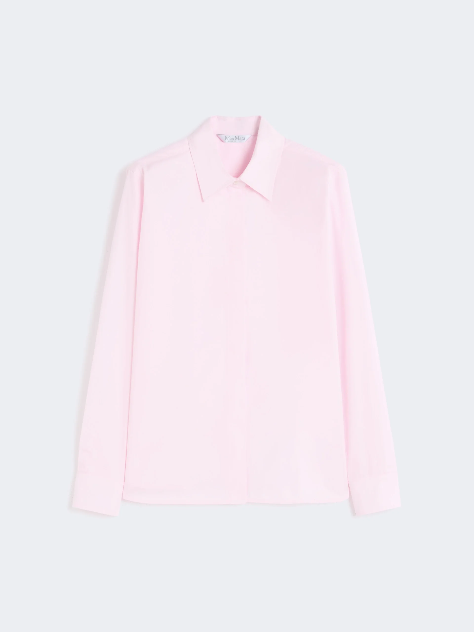DETAILS Mannish-style shirt. - Pure cotton poplin shirt - Regular fit - Shirt collar and double cuffs - Set-in sleeves - Concealed button fastening on the front - Darted yoke and a central pleat at the back - Rounded hem with side slits COMPOSITION AND CARE 100% cotton. Machine wash cold delicate cycle; do not bleach; do not tumble dry; line drying in the shade; cool iron; professionally dry clean perchloroethylene - mild process.; put this item into a string bag before washing it.; wash the garment while it is fastened.; protect buttons before washing.; turn the articles inside out before washing.; contains non-textile parts of animal origin. Distributed by Max Mara S.r.l., registered office in Reggio Emilia (Italy), Via Giulia Maramotti 4, 42124 (IT) Collection: Max Mara Product code: 1111106106003 - MXMMAROSO