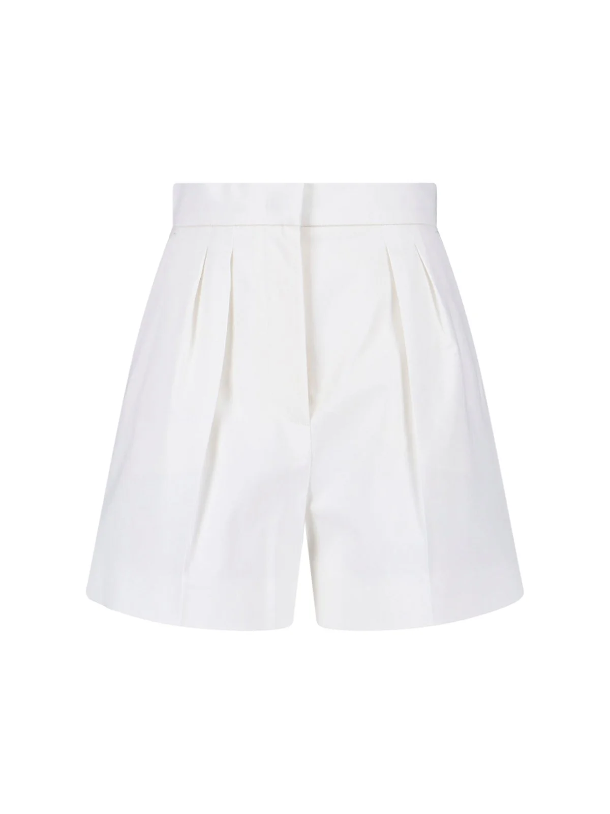 - COTTON SATIN SHORTS IN WHITE MAX MARA - MID-RISE - ZIP CLOSURE AND HOOK - BELT LOOPS - TWO SIDE POCKETS - TONE-ON-TONE LOGO ON THE BACK - STRAIGHT LEG PRODUCT INFO PRODUCT CODE 2611141012600056 COMPOSITION: 97% COTTON, 3% ELASTANE SIZE AND FIT: REGULAR FIT MADE IN: ITALY