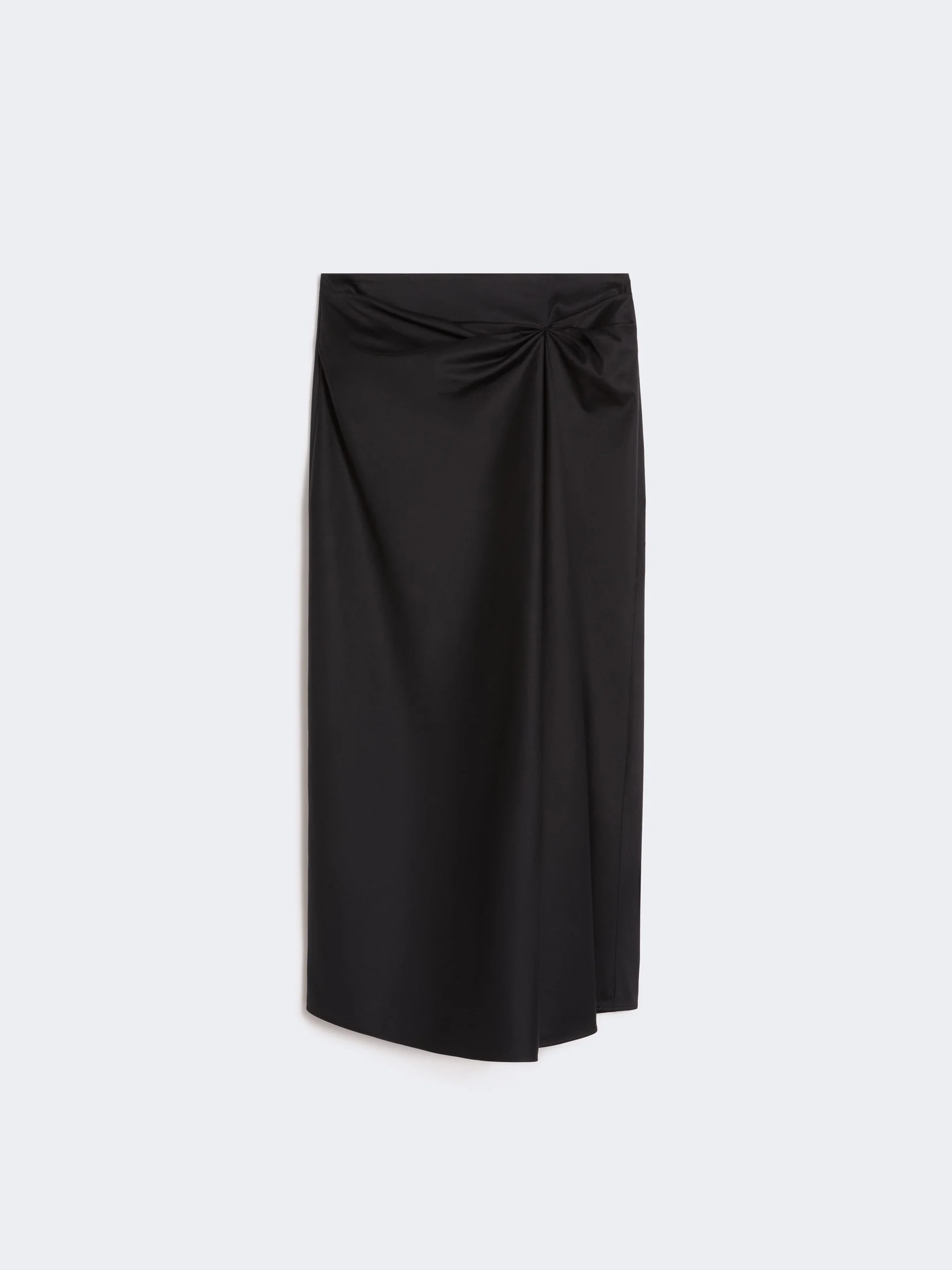 DETAILS Long skirt featuring a movement-bestowing draped asymmetrical pleat on the front. - Skirt in stretch cotton satin fabric - Semi-fitted cut - Concealed zip fastening at the back - Sewn darts at the back of the waist - Unlined model COMPOSITION AND CARE 82% cotton, 14% polyamide, 4% elastane. Machine wash cold delicate cycle; do not bleach; do not tumble dry; line drying in the shade; cool iron; professionally dry clean perchloroethylene - mild process.; wash the garment while it is fastened.; turn the articles inside out before washing. Distributed by Max Mara S.r.l., registered office in Reggio Emilia (Italy), Via Giulia Maramotti 4, 42124 (IT) Collection: Max Mara Product code: 1101016206002 - MXMPAGGI