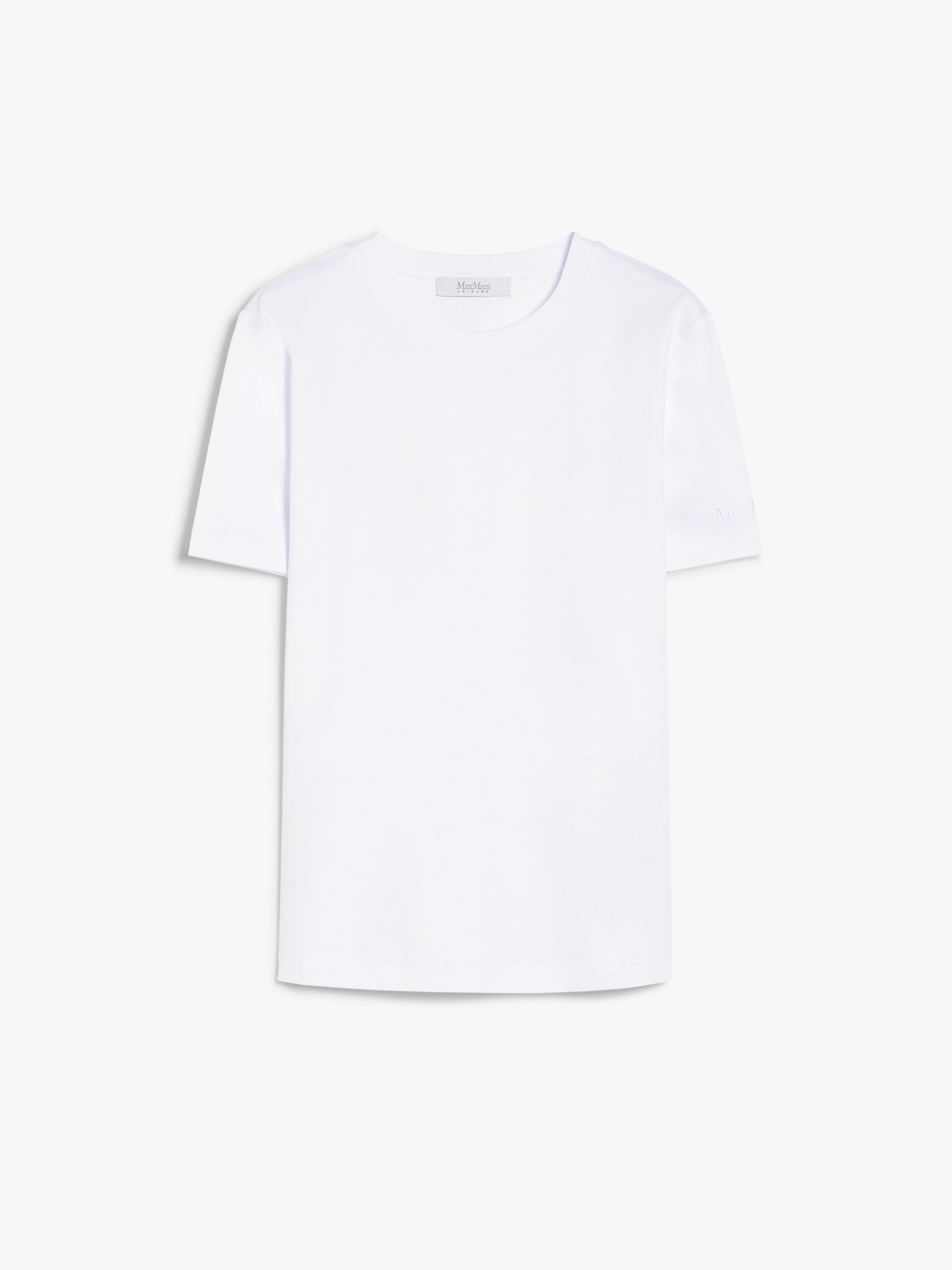 DETAILS Short sleeved T- shirt in soft cotton and modal interlock fabric featuring a hip hugging fit. The model boasts a rib knit crew neckline and tonal thread embroidered logo detail on the left sleeve hem. COMPOSITION AND CARE Jersey fabric 51% modal, 49% cotton; - exclusive of embroideries. Hand wash cold; do not bleach; do not tumble dry; drip line drying in the shade; cool iron; professionally dry clean perchloroethylene - mild process; do not wet clean.; iron with a cloth between.; using neutral detergent. Distributed by Max Mara S.r.l., registered office in Reggio Emilia (Italy), Via Giulia Maramotti 4, 42124 (IT)
