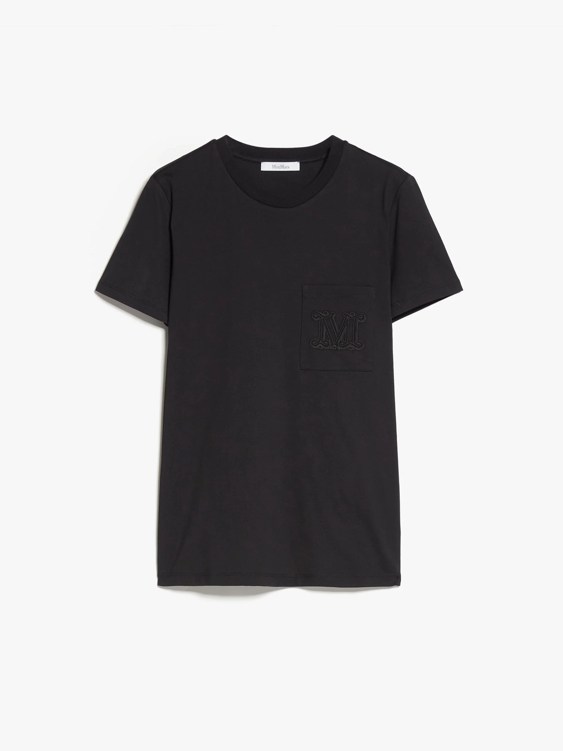 DETAILS Straight-cut T-shirt with chest pocket and matching embroidered M monogram detail. Pure cotton jersey T-shirt Regular fit Ribbed neckline Short set-in sleeves COMPOSITION AND CARE Jersey fabric 100% cotton; - exclusive of embroideries. Machine wash cold delicate cycle; do not bleach; do not tumble dry; flat drying in the shade; cool iron; professionally dry clean perchloroethylene - mild process; professional wet cleaning - very mild process.; iron with a cloth between.; using neutral detergent.; turn the articles inside out before washing.; to be ironed on reverse. Distributed by Max Mara S.r.l., registered office in Reggio Emilia (Italy), Via Giulia Maramotti 4, 42124 (IT)