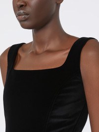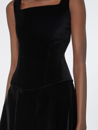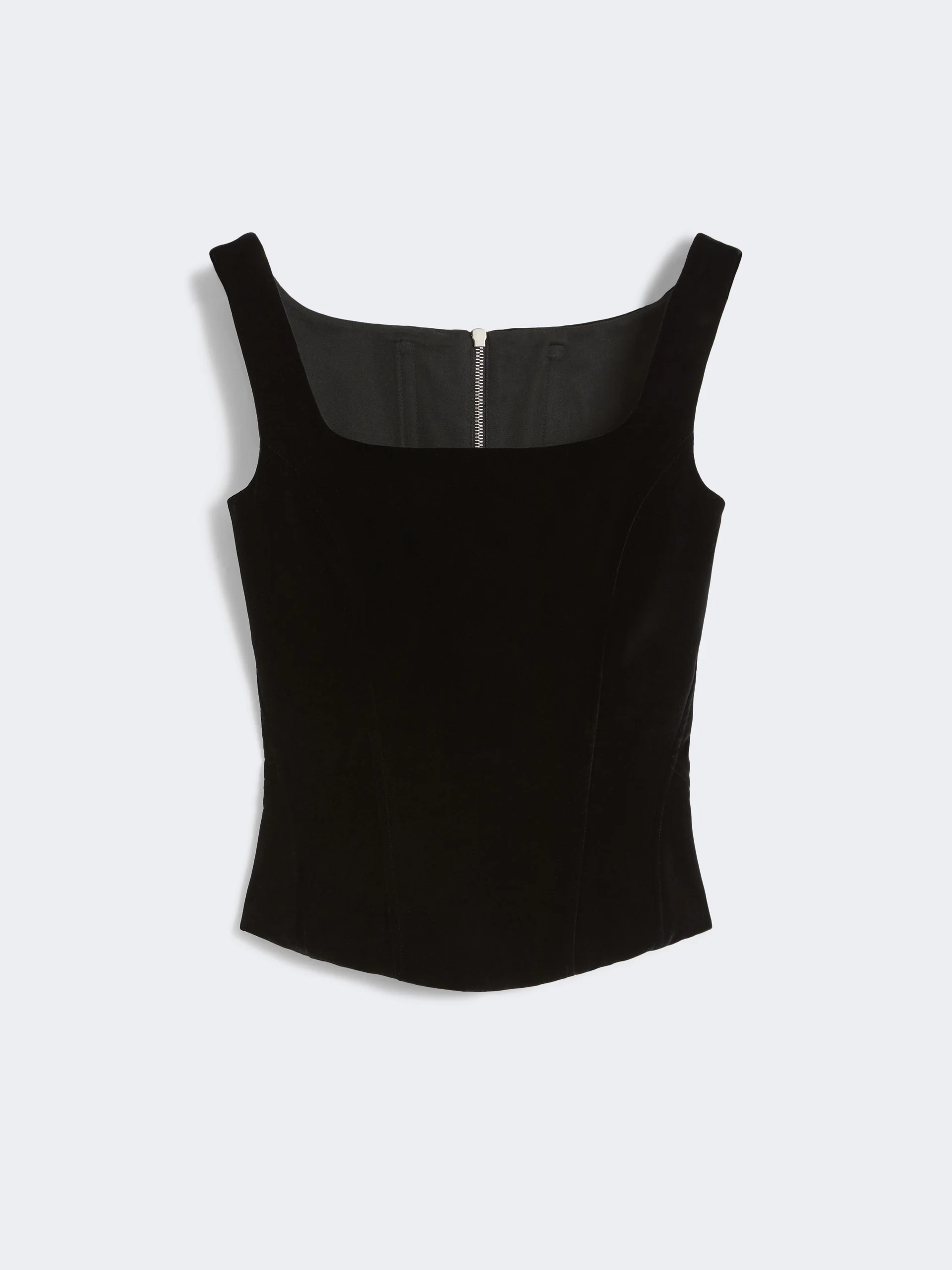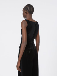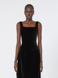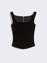 DETAILS Slim-fit sleeveless top, featuring a bustier-style construction with a square neckline. Top in smooth, stretch cotton velvet Figure-hugging Thin shoulder straps Metal zip fastening at the back Lined COMPOSITION AND CARE Fabric 98% cotton, 2% elastane; lining 100% cotton. Do not wash; do not bleach; do not tumble dry; cool iron; professionally dry clean perchloroethylene - mild process; do not wet clean. Distributed by Max Mara S.r.l., registered office in Reggio Emilia (Italy), Via Giulia Maramotti 4, 42124 (IT)