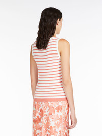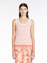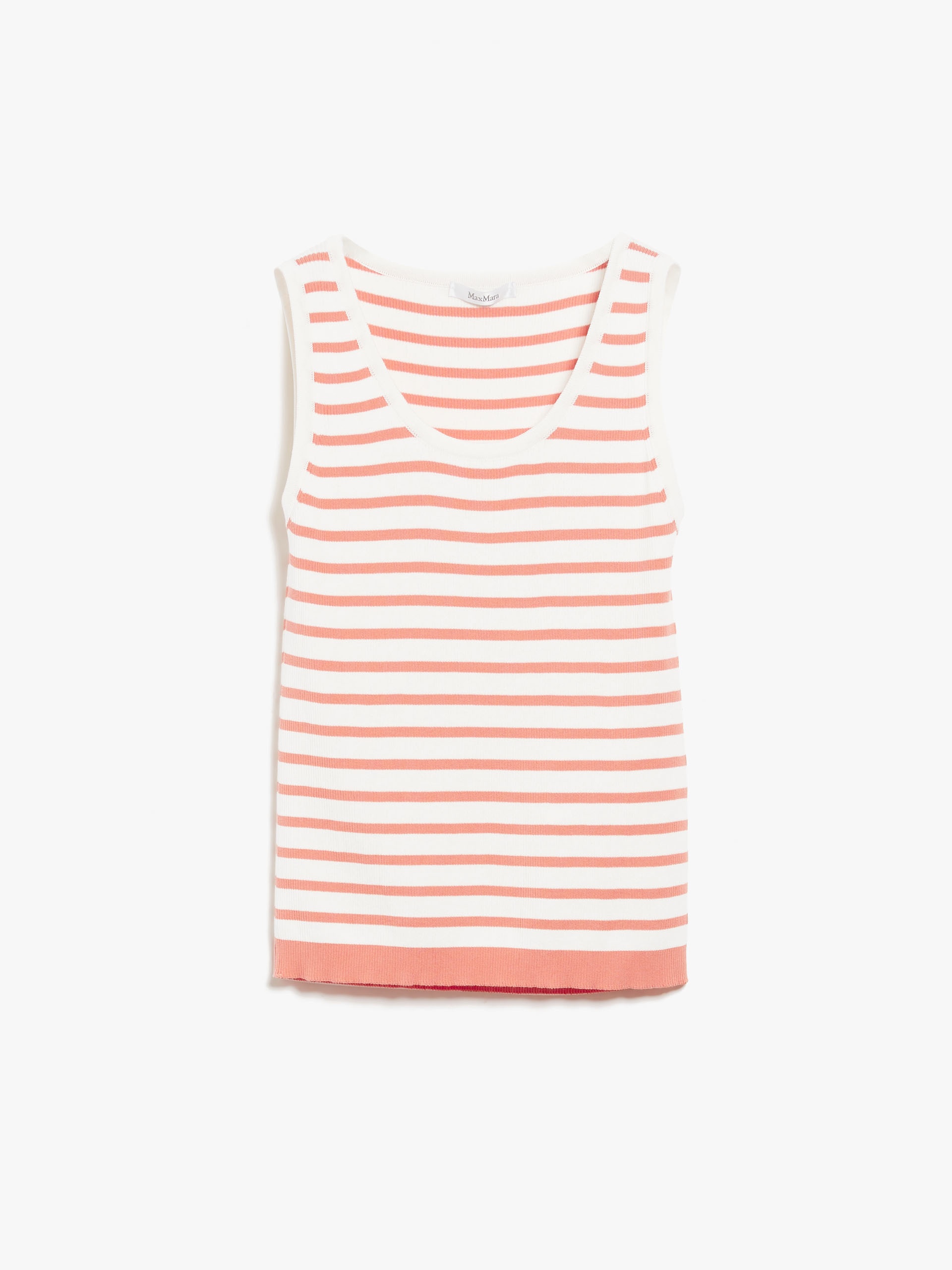 DETAILS Sleeveless top in soft crêpe cotton yarn, ribbed to enhance the silhouette. Round neckline and wide shoulder straps. Length: 56 cm. COMPOSITION AND CARE 100% cotton. Hand wash cold; do not bleach; do not tumble dry; flat drying in the shade; cool iron; professionally dry clean perchloroethylene - mild process; do not wet clean.; iron with a cloth between.; using neutral detergent. Distributed by Max Mara S.r.l., registered office in Reggio Emilia (Italy), Via Giulia Maramotti 4, 42124 (IT)