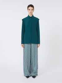 DETAILS Mannish-style shirt featuring button-up sleeves and subtle voluminous shoulders. Pure silk crepe de chine shirt Straight fit Pointed collar Concealed button fastening on the front Button on the side of the double cuffs Straight hem with squared-off side slits COMPOSITION AND CARE 100% silk. Do not wash; do not bleach; do not tumble dry; cool iron; professionally dry clean perchloroethylene - mild process; do not wet clean.; wash the garment while it is fastened.; do not iron the buttons.; protect buttons before washing.; turn the articles inside out before washing. Distributed by Max Mara S.r.l., registered office in Reggio Emilia (Italy), Via Giulia Maramotti 4, 42124 (IT)