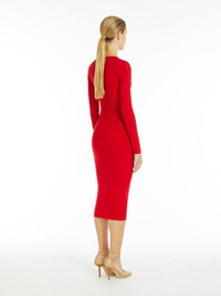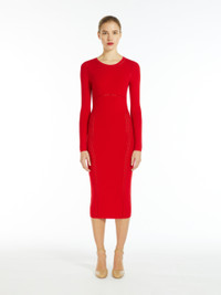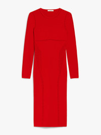DETAILS Midi dress in a viscose crêpe yarn knit, featuring a fitted silhouette highlighted by a punched motif on the waist, crew neck and long sleeves. COMPOSITION AND CARE 62% viscose, 38% polyester. Hand wash cold; do not bleach; do not tumble dry; flat drying in the shade; cool iron; professionally dry clean perchloroethylene - mild process; do not wet clean.; iron with a cloth between.; using neutral detergent. Distributed by Max Mara S.r.l., registered office in Reggio Emilia (Italy), Via Giulia Maramotti 4, 42124 (IT)