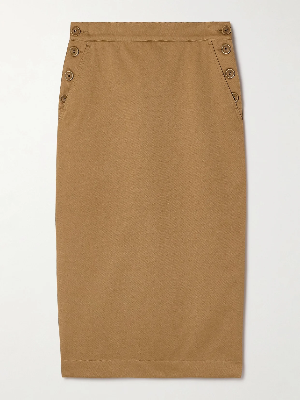 Max Mara's 'Cresta' skirt is modeled off workwear styles of the '30s and '40s and updated for today. Made from cotton-twill with a soft sheen, it's designed in a straight shape and has tonal horn buttons along the hips. Emulate the Spring '24 runway by styling yours as part of an all-neutral outfit.