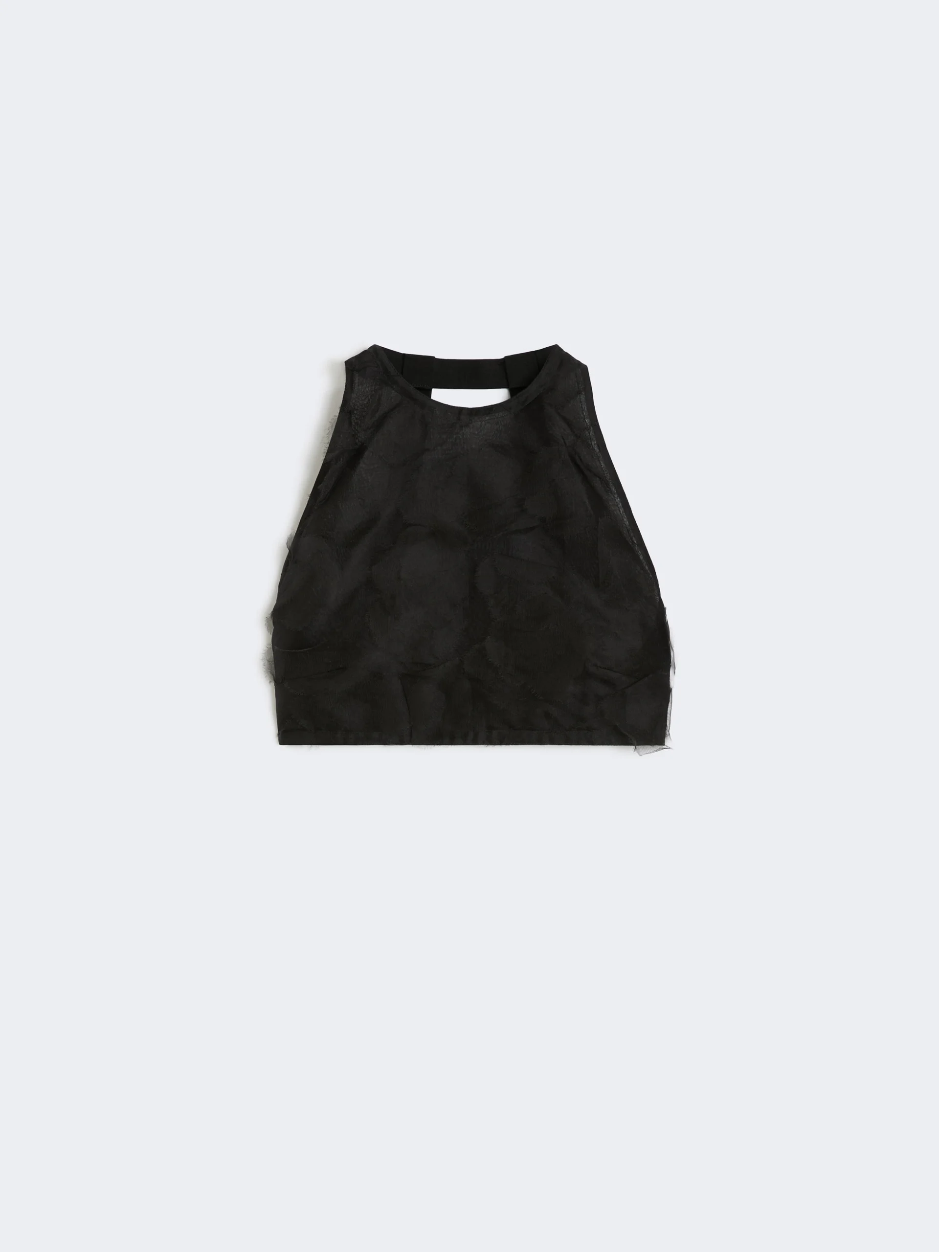DETAILS Sleeveless crop top with halterneck, featuring an open back design. - Slim fit - Top in pure silk fil coupe jacquard with a 3D-effect design - Back closure with elastic straps and snap buttons - Lined in silk organza voile COMPOSITION AND CARE Fabric 100% silk; lining 100% silk; - exclusive of decoration. Do not wash; do not bleach; do not tumble dry; cool iron; professionally dry clean perchloroethylene - mild process; do not wet clean.; put this item into a string bag before washing it.; do not iron the decoration.; turn the articles inside out before washing.; contains non-textile parts of animal origin. Distributed by Max Mara S.r.l., registered office in Reggio Emilia (Italy), Via Giulia Maramotti 4, 42124 (IT) Collection: Runway Product code: 1161206306002 - MXSFUMETTO