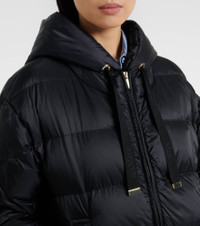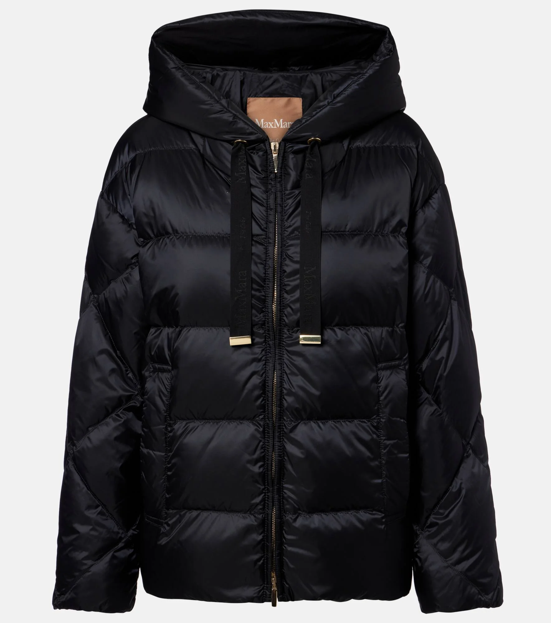 Boasting a rich manufacturing history, Max Mara represents the quintessence of Italian sophistication and expertise. Part of the Cube Line, this warm jacket is filled with down and features diamond quilting. Product Details - Material: 100% polyamide - Care instructions: machine wash at 30 degrees - Made in Armenia - Color: black - Designer color name: Black - Item color: black - Lining: 100% polyamide - Filling: 90% down, 10% feathers - Contains non-textile parts of animal origin - Hardware color: gold - Drawstring hood - Closure: two-way zipped front - Cuff: elasticated - Pockets: snap-buttoned pockets, internal pockets - Item number: P01124666 Size & Fit - True to size - Straight fit - Non-stretchy fabric - Falls below the hip - The model seen in the picture is 178cm-5'10" and wearing a size DE 34