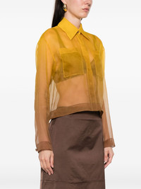 semi-sheer shirt Highlights - Ochre yellow - Concealed front button fastening - Buttoned cuffs - Two chest patch pockets - Pleat detailing Made in Italy Composition Silk 100% SIZE & FIT Model measurements Height 5 ft 10 in(1.78 m) Bust/Chest 33.46 in(85 cm) Hips 36.22 in(92 cm) Waist 23.22 in(59 cm) FittingInformation Designed for a relaxed fit, this piece allows for comfort and movement when worn Cropped in length Made from a lightweight non-stretch fabric