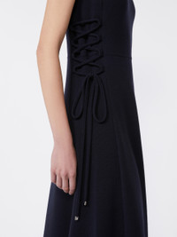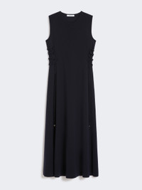 DETAILS Long, sleeveless dress with drawstring detail on the sides with metal ends. Dress in pure wool yarn, in a fabric-stitch knit Fit & flare lines Crew neck Seam at the waist COMPOSITION AND CARE 100% virgin wool. Hand wash cold (40°c max); do not bleach; do not tumble dry; flat drying in the shade; cool iron; professionally dry clean perchloroethylene - mild process; do not wet clean.; iron with a cloth between.; using neutral detergent. Distributed by Max Mara S.r.l., registered office in Reggio Emilia (Italy), Via Giulia Maramotti 4, 42124 (IT)