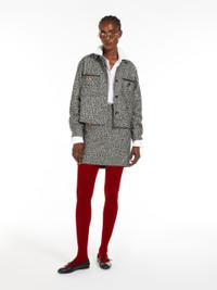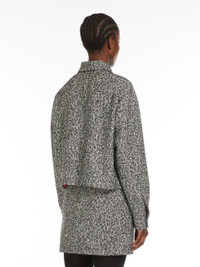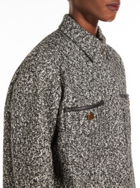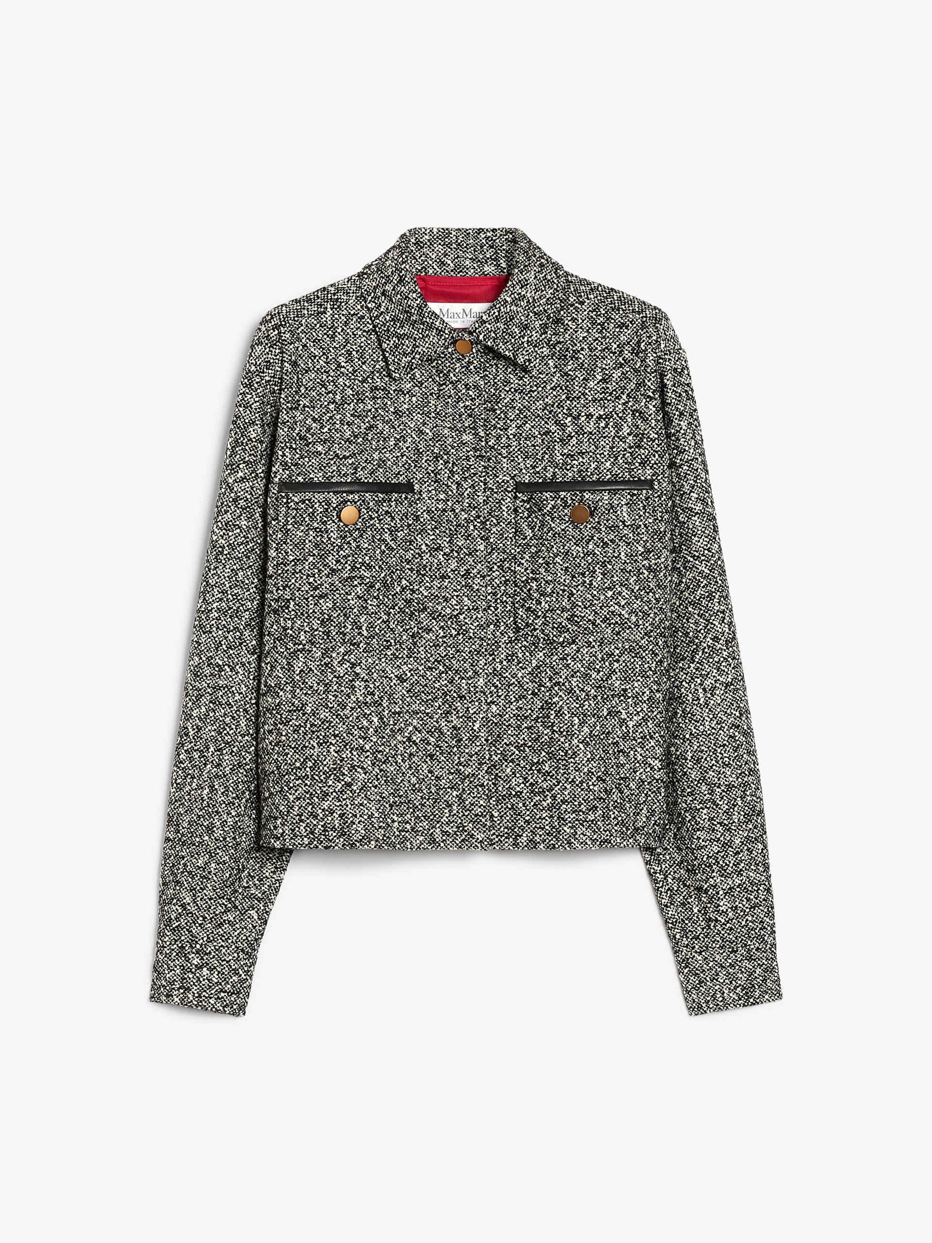 DETAILS Boxy jacket in a wool blend tweed, featuring a straight silhouette with slightly oversized volume, dropped shoulders and length cropped to the waist. It has a classic shirt collar, long sleeves with cuffs and patch pockets on the chest with contrasting leather welt and metal button. A Special Edition item, finished with leather details and peony-coloured stretch customised Monogram lining. Concealed button fastening. COMPOSITION AND CARE Fabric 87% virgin wool, 13% polyamide; lining 65% acetate, 35% polyester. Do not wash; do not bleach; do not tumble dry; cool iron; professionally dry clean perchloroethylene - mild process; do not wet clean.; wash the garment while it is fastened.; do not wash or dry clean by fabric methods. clean only by leather and fur specialists.; do not iron the real leather details.; do not iron the buttons.; protect buttons before washing.; turn the articles inside out before washing.; contains non-textile parts of animal origin. Distributed by Max Mara S.r.l., registered office in Reggio Emilia (Italy), Via Giulia Maramotti 4, 42124 (IT)