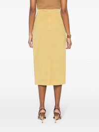 Denver midi twill skirt Highlights - Ochre yellow - Cotton - Twill weave - Two side slash pockets - Central rear vent - Internal logo tag - Mid-length - Straight hem - Concealed rear zip fastening Made in Italy Composition Cotton 100% SIZE & FIT Model measurements Height 5 ft 11 in(1.8 m) Bust/Chest 30.7 in(78 cm) Hips 35.03 in(89 cm) Waist 24.4 in(62 cm) FittingInformation This midi-length skirt is intended to be worn high on the waist The vented hem offers movement at the rear Made from a midweight non-stretch fabric This piece fits true to size – take your usual size Washing instructions Machine Wash